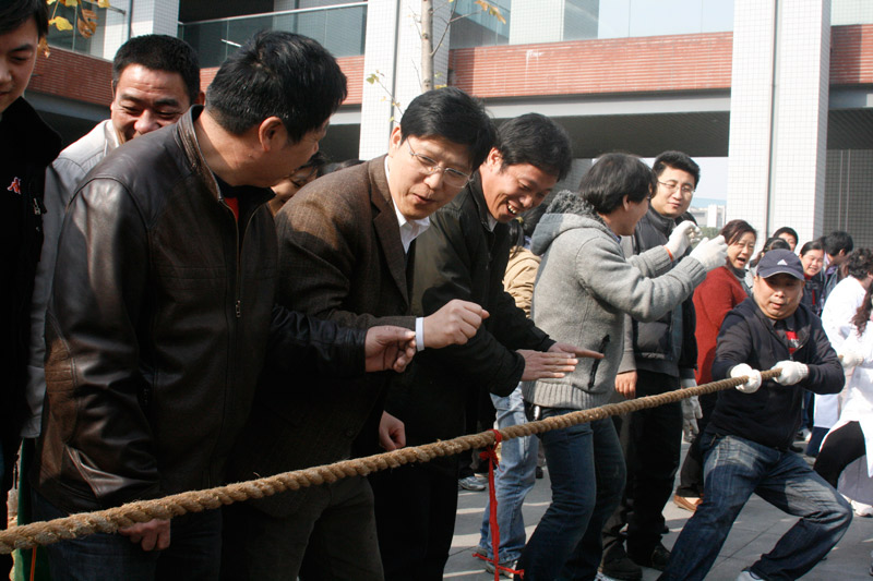 为了丰富全体教工业余生活,活跃气氛,营造团结向上的和谐氛围,牢固树立健康生活的理念。11月26日下午1:00,医学部工会主办、基础医学系工会承办的全体教工拔河比赛在医学部吴弘萍副书记的宣布下,正式拉开帷幕。本次拔河比赛由来自6家附属医院、药学院、公共卫生系、医学部机关和基础医学系共10支队伍参加,每队10名队员(5男5女),参赛队员各个精神饱满,他们紧握绳子,扎好马步,跃跃欲试。随着一声哨声响起,各方队员齐心协力,毫不示弱,使出全身力气抓住绳子往回拉。队员们屏住呼吸,目光的焦点随着绳子中间的红绳来回移动,比赛场面异常激烈。啦啦队更是表现出极大的热情,为队员们呐喊助威,时时爆发出热烈的掌声和欢呼声。经过紧张激烈的角逐,最后,附属二院拔河队荣膺冠军、附属一院、附属儿童医院、药学院分别荣获亚军、季军和鼓励奖,医学部工会副主席王亦夫老师、基础医学系工会主席周韧教授分别给获奖单位颁发奖状和奖金。