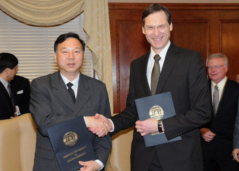 南卡罗莱纳医科大学经医学部顾问李摩西先生引荐,于2009年5月第一次访问浙江大学医学部。此后,两校经过多次互访、视频会议和协商在多个领域达成了合作意向。李摩西顾问对两校合作起了积极地推进作用,并拟在南卡罗莱纳医科大学校附近购买房产,主要用于浙大师生在南卡交流的住宿和办公。