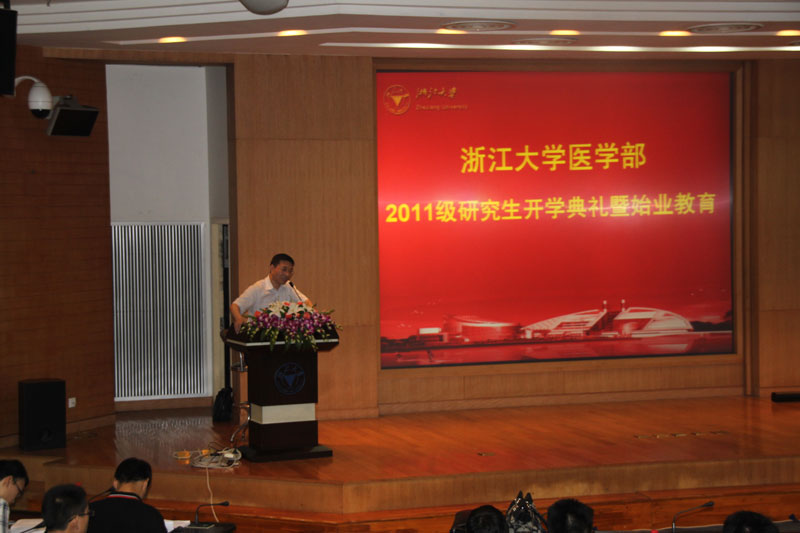 2011年9月1日上午,医学部2011级研究生开学典礼暨始业教育在紫金港国际会议中心225会议室隆重举行。500多名研究生新生参加了典礼。会议由医学部副主任黄河教授主持。医学部常务副主任罗建红教授、党委副书记张小玲老师、教学办公室俞方主任、基础医学系副主任欧阳宏伟教授及相关分管研究生工作的老师参加了会议。