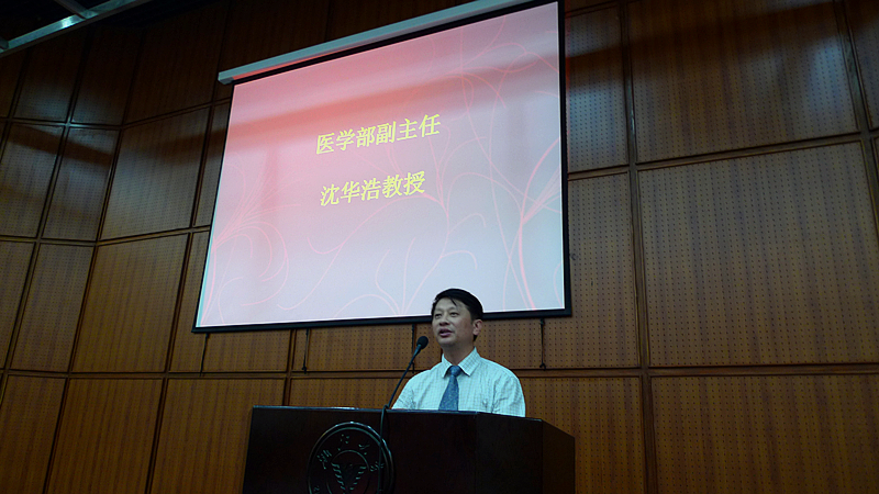 沈华浩副主任在讲话中指出21世纪是生命科学的时代,鼓励在座各位医学生要抓住医学部快速发展的历史时机,铭记自己的责任和使命,刻苦学习,不断提高医学知识和医学技能。