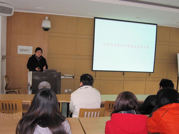 2011年12月13日,公共卫生系2012届毕业生就业动员大会在医学院综合楼307报告厅举行,医学部党委副书记张小玲、医学部华家池学生党总支书记汪苏华、公共卫生系副主任朱善宽、曾群力,以及公共卫生系09级30余位研究生参加了会议。活动由公共卫生系党总支副书记叶旭军主持。