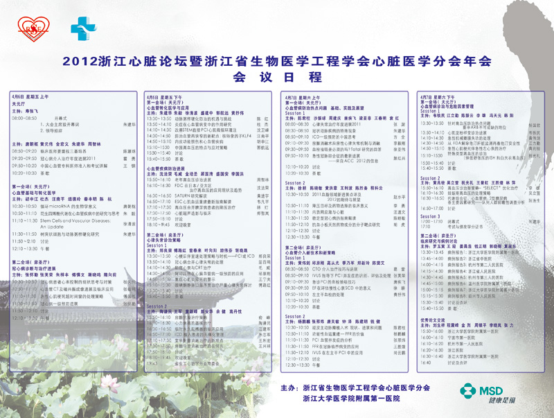 “2012浙江心脏论坛” 暨浙江省生物医学工程学会心脏医学分会年会)将于2012年4月5日到7日在浙江省杭州市举行。我谨代表浙江省生物医学工程学会心脏医学分会、会议组委会诚挚地邀请您参加此次盛会。