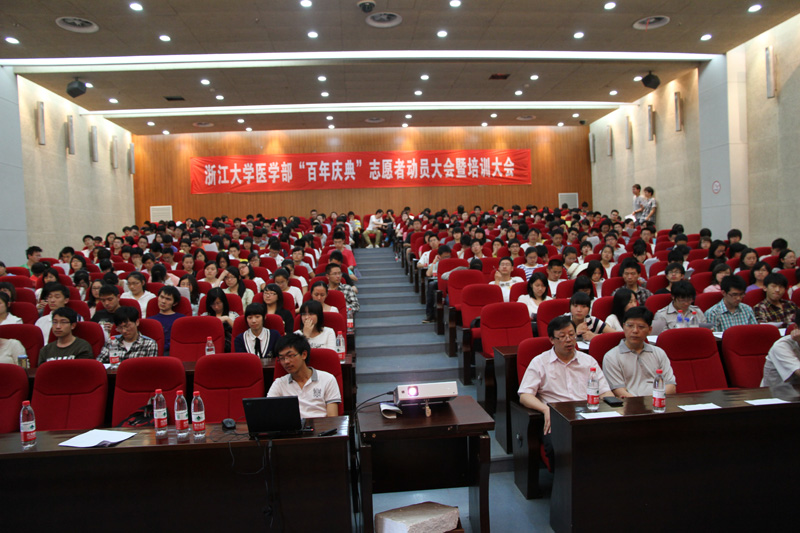 2012年6月1日将迎来浙医百年华诞。浙江大学医学部将在5月25日至27日举办百年浙医庆典系列活动。为提升志愿者服务水平,做好大会接待服务工作,更好地展现浙江大学医学部的风采,医学部于5月6日下午召开了医学部百年庆典志愿者动员大会暨培训大会。350多名师生志愿者参加了本次大会。