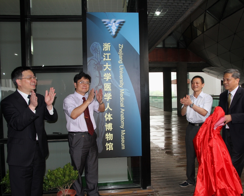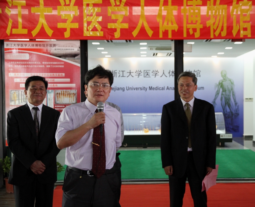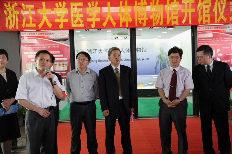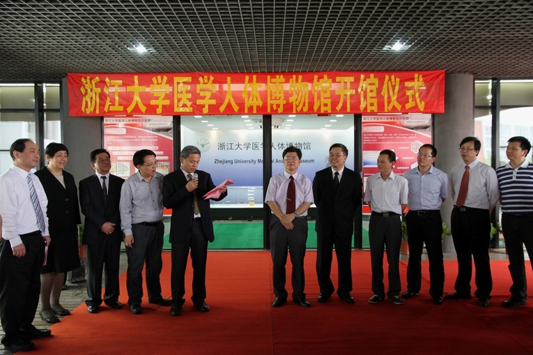 5月25日,浙江大学医学人体博物馆正式开馆。学校党委副书记郑强,紫金港校区党工委书记周建华,宣传部部长沈文华,学工部副部长林伟连,浙江省科技馆馆长李瑞宏,浙江省科学技术协会科普部副部长季良纲,浙江大学医学部领导班子以及100余名医学部师生参加了医学人体博物馆开馆仪式。揭幕仪式由医学部主任段树民院士主持。