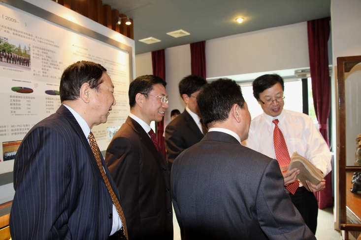 仪式结束后,嘉宾们还在学部领导陪同下翻阅《百年浙医》,并参观了院史陈列室。