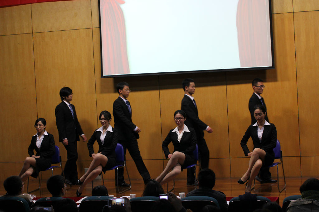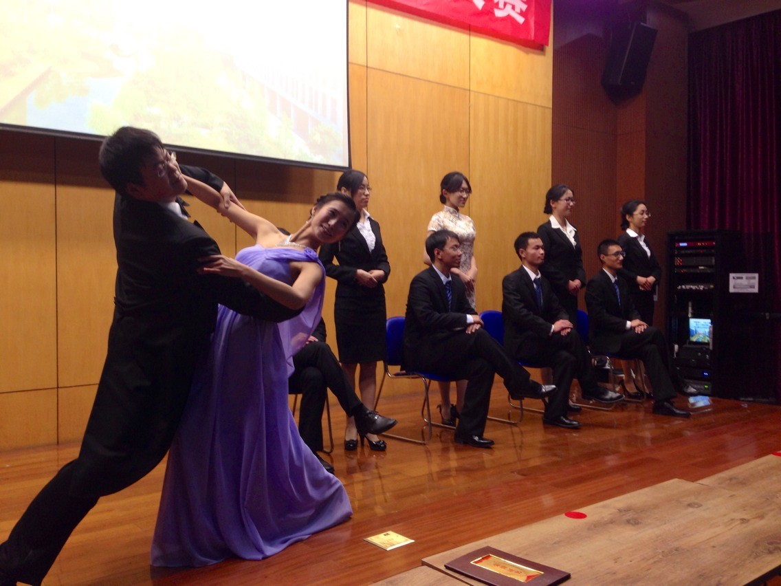 首先进行的是集体风采展示。笔挺的西装、整齐的步伐,各个班级或创意连连或完美的展示都让人为之眼前一亮。紧接着的班级个人风采展示更是让人大开眼界,有茶艺、书法、朗诵、舞蹈等各种形式。那遒劲有力的笔画彰显了同学们刚毅有力的体魄,那曼妙唯美的舞步描绘了同学们真挚纯美的心愿,那饱含深情的吟诵抒发了同学们坚定不移的志向,那茗香古韵的琼浆倾泻了同学们悲天悯人的仁慈。各位评委对表演的同学们都赞不绝口。为了考验同学们的随机应变能力,比赛还设置了情景模拟环节以检验同学们在特定场合下规范的行为礼仪。