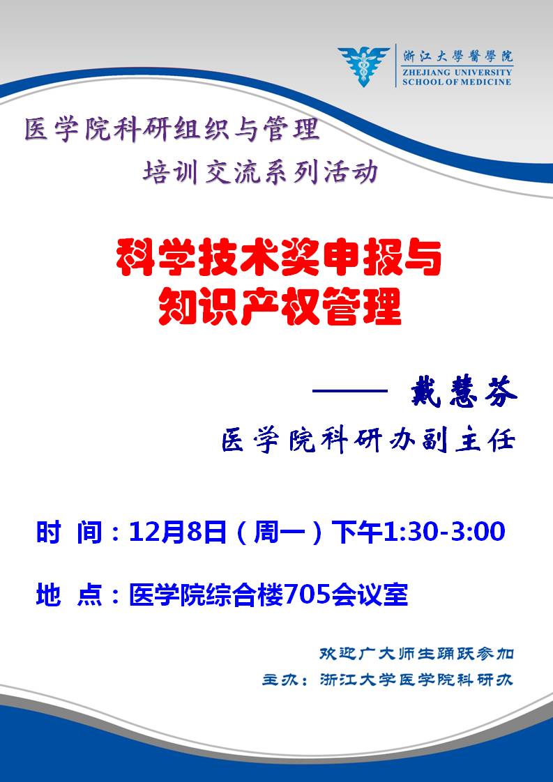 医学院科研组织与管理培训交流系列活动第六场——科学技术奖申报与知识产权管理