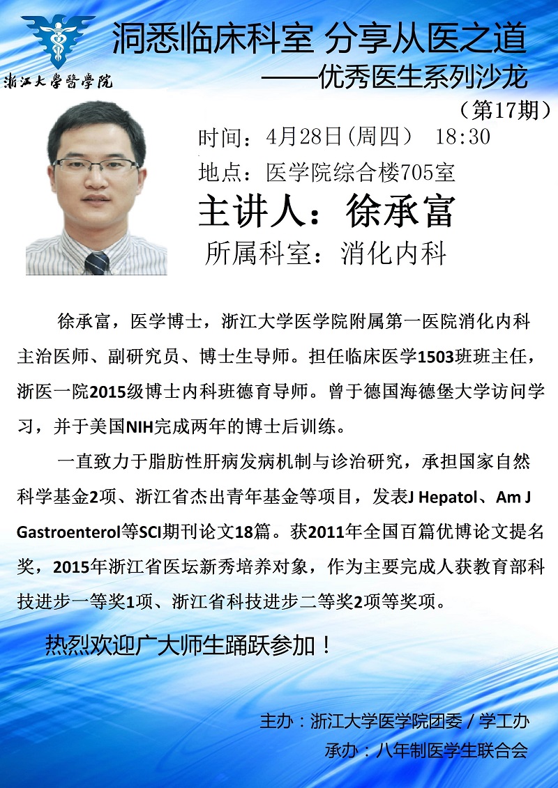 “洞悉临床科室 分享从医之道”优秀医生系列沙龙第十七期--消化内科徐承富老师