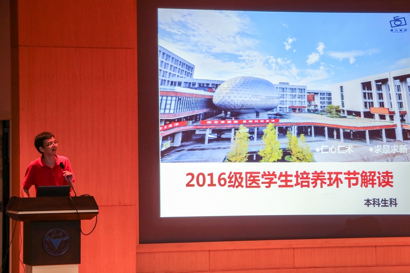 医学院教学办公室本科生教育科科长韩魏老师详细解读了2016级医学生培养环节。对临床,口腔,预防,生物医学等专业进行了分类系统介绍。此外,他就培养方案与特色、主修专业确认、推荐免试研究生、毕业审核等进行了说明。