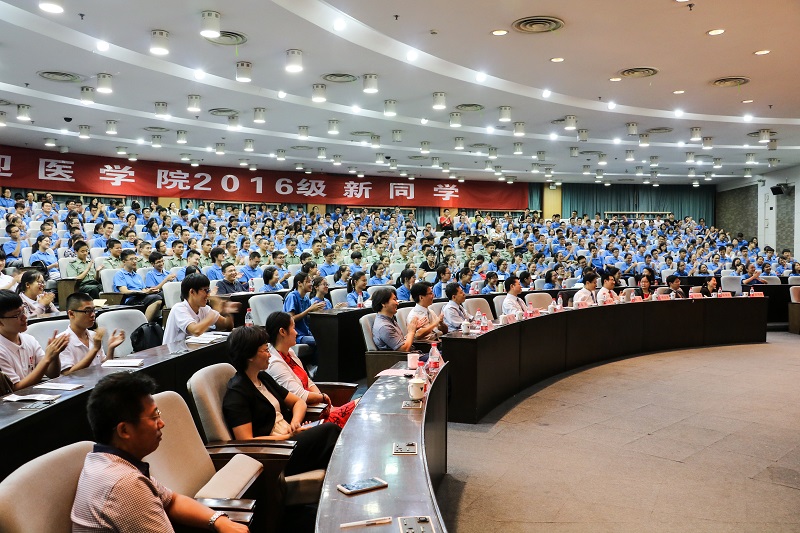 来自医学试验班类(5+3) 1602班的沈宇燕同学代表今年进入医学院的470多名新同学表达了对学院师长们的感谢。在发言中,她怀着无比激动的心情,表达了自己对即将到来的大学生活的憧憬与期待,热情洋溢地跟大家分享了自己的医学梦想,选择医学源于它和生活息息相关,源于它与生命紧紧相连。
