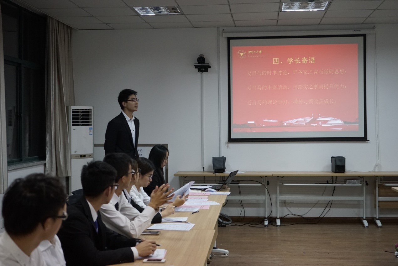 第八期青马班成员代表王家富同学代表八期青马全体成员做第八期青马工作汇报,从理论学习、读书报告、时事评论到文化建设,社会实践、礼仪风采大赛,他们用自己的实际行动展现着医学院青马人的风采。“又红又专”,红的是思想,专的是行动。“红”代表扎实的理论基础和一定的思想境界,“专”则是对专业知识和能力的要求。讨论今年两会的内容时,成员会着重分析“医改”相关的形式和政策;在小说类书籍的阅读时,选取《无影灯》等医疗行业相关,反映医者心态的小说;在活动创办上,响应党中央“先锋学子”的号召,对院内承办面向学院所有学生党员的“先锋学子”讲座。