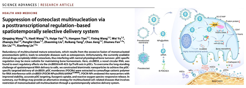 3. Science Advances》——发文揭示了破骨前体细胞膜包被的纳米颗粒搭载circRNA以实现时空选择性精准调控破骨细胞治疗骨质疏松的作用和机制