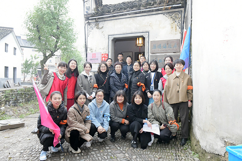 第二站,党员们来到位于富春江龙门山下龙门古镇。龙门古镇是浙江省纪委命名的第二批廉政文化教育基地。这里是三国孙权的故里,历代英才辈出。党员们参观了独特的建筑设计和楹联匾额,感受到了厚重的历史文化底蕴和颇具特色的家风家教。在这里,党员们还参观了孙晓梅烈士纪念馆并瞻仰了烈士故居,共同学习了孙晓梅烈士的光辉事迹。通过参观学习,党员们深入了解了富阳革命先驱的铮铮铁骨和崇高品格。参观之余,三个支部的党员们分组开展了红色实践活动,在加强结对支部党员的协作交流中,生动开展社会主义核心价值观宣传教育,深化爱国主义、集体主义、社会主义教育。