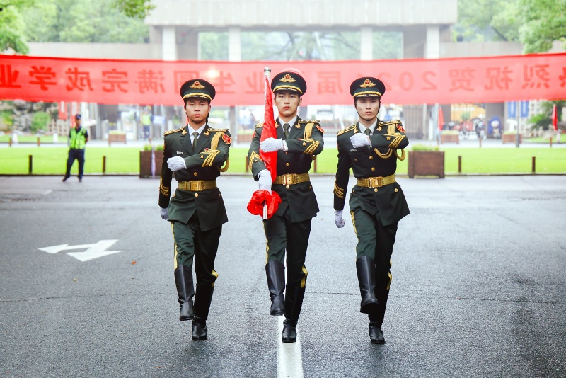 活动当天,肆虐了好几天的磅礴大雨戛然而止,空气中飘散着一丝雾气,隐约看到了久违的阳光,参加活动的教职工们如约而至,相聚在浙江大学玉泉校区毛主席像前的大草坪。启动仪式上,浙江大学国旗仪仗队的升旗手们护卫着鲜艳的五星红旗入场,伴随着《义勇军进行曲》的奏响,五星红旗冉冉升起,大家整齐列队,庄严肃立,在雄壮的国歌声中共同追忆历史、激发奋进力量。