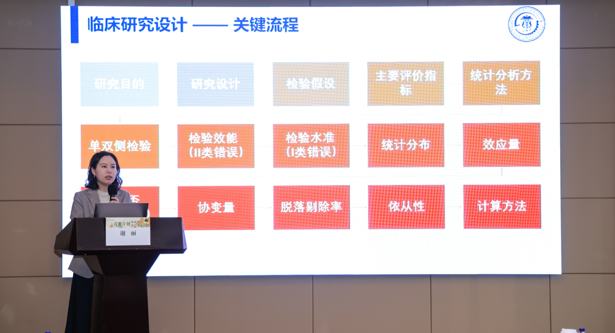 随后,谢丽作了题为《样本量估计的要点及统计学考虑”》的主题报告。谢老师从专业的方法学视角出发,深入剖析了样本量估计的关键要素、基本操作步骤、考量要点及常见问题等多个层面,并结合自身参与的临床研究相关案例进行分享,让与会者对临床研究中样本量评估的理解及方法学运用更透彻。