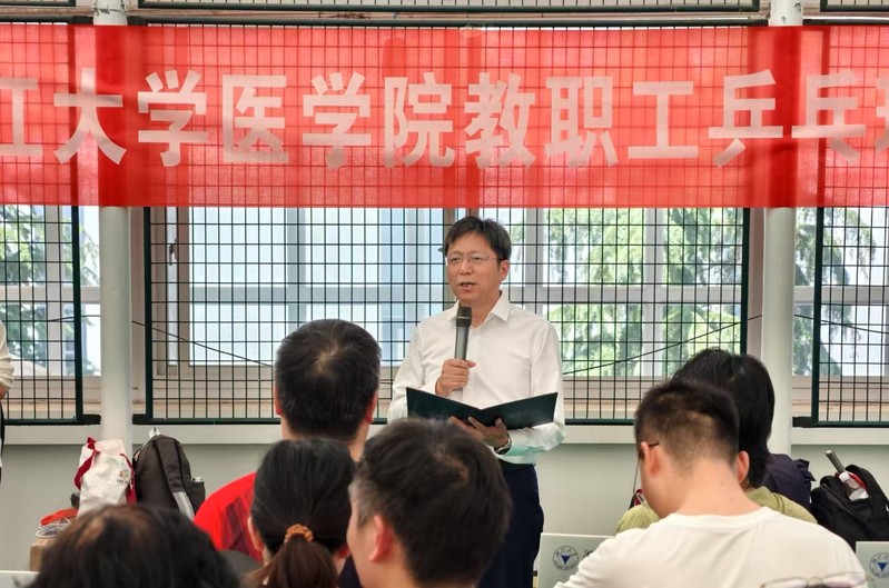 顾国煜向远道而来的校友和踊跃参赛的教职工致以热烈欢迎与诚挚感谢。他指出,乒乓球作为中国“国球”,所蕴含的拼搏进取、团结协作精神,与医学院“仁心仁术、求是求新”的育人文化高度契合。“希望大家在赛场上既要展现‘求是’的严谨态度,也要传递‘仁心’的互助精神,赛出活力、风采与友谊。”他表示,本次赛事创新设置校友队与教工队同场竞技,旨在搭建起校友与师生间友谊与交流的桥梁,让这份情谊在银球飞舞间不断升温。