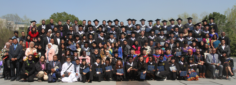 Vice President Prof. Song, Dean of International Education School Prof. Wang, Party Secretary of School of Medicine Prof. Huang, and Deputy Party Secretary Prof. Li Xiaoming of School of Medicine awarded diplomas to 63 graduates.
