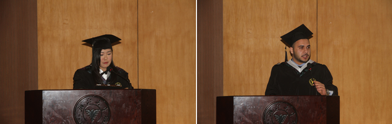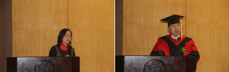 The opening speech given by Professor Fang, Xiangming raised the curtains of the Commencement. Professor Song, Yonghua, Executive Vice President of Zhejiang University, Professor Duan, Shumin, Dean of Medical School and Professor Liu, Hui, Dean of International College respectively delivered a speech after the School Anthem. Ms. Joan Lim Ai Hui and Mr. Mahmoud Khalaf, on behalf of the graduation students expressed their deep impression on our university and thanks for the warmhearted instructions from their teachers to the students for five and a half years.