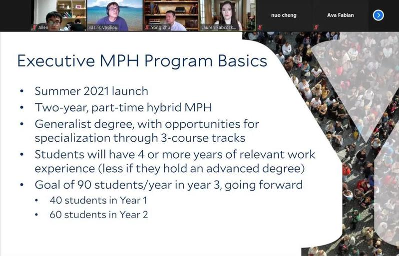 Lectures are concentrated on biosestatistics, chronic disease epidemiology, environmental health science, microbial epidemiology, health policy and management, social and behavioral science, global health brought a  cutting-edge intersection of Yale University public health education.  Also introduction of MPH, MS, Ph.D., Dr.PH and other postgraduate degree programs were given. When sharing the MPH project, Professor Felicia Spencer encouraged MPH students to have internship at health organizations, government health care departments and health companies for career exploring.
