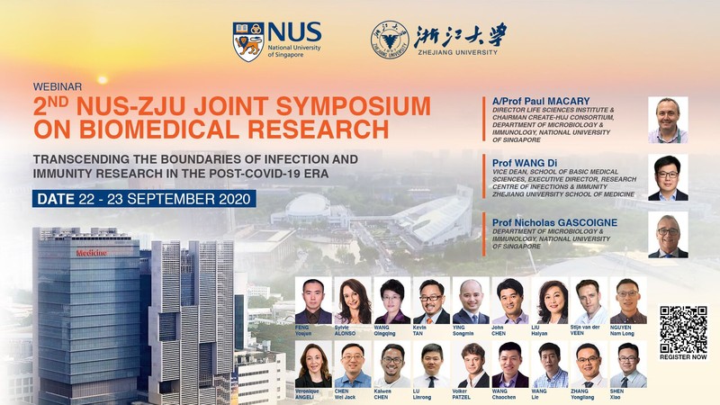 Last year, 19 scholars from Yong Loo Lin School of Medicine, National University of Singapore (NUS) gathered with several scholars from ZJU-UoE Institute, and School of Basic Medical Sciences, ZJU, in Zijingang Campus, ZJU. They gave a series of talks on Biomedical Sciences. Due to global pandemic, face to face communicate cannot work this year, however online talks bring them back from 22 to 23, September, 2020.Speakers shared the latest scientific research achievements in the fields of Infection and Immunity Research. Nearly 300 of teachers and students attended the online lectures.