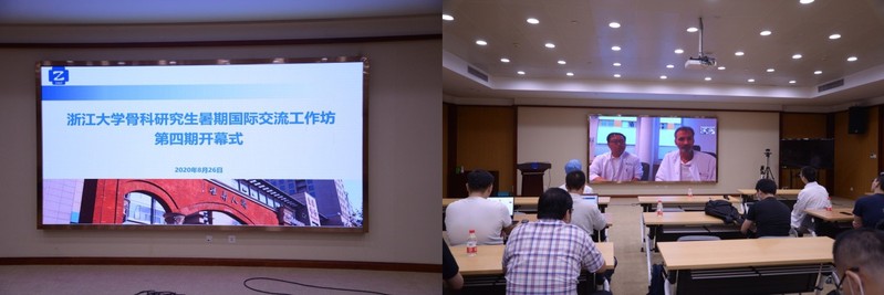 The Summer International Exchange Workshop for Orthopaedic Graduate Students of Zhejiang University has been held four consecutive period: July 27, July 28, August 12, and August 26, 2020 respectively. The conference platform promotes real time face-to-face communication with foreign professors without traveling, topics are in bone tumors, bone joints, spine and other cutting-edge fields. Series lectures includes medical records taking, discussions, and surgical demonstrations, especially the Mako robot-assisted surgery.