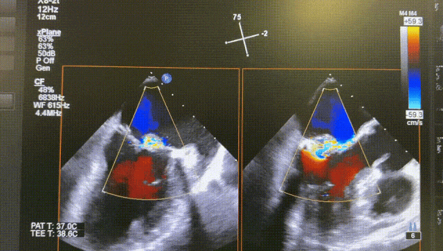 The procedure was uneventful, with only one XW0612 mitral clip implanted in P3 position to close the leaflet. The patient's regurgitation decreased with pulmonary venous regurgitation improved, and the mitral valve pressure difference was 1 mmHg, significantly improving the patient's cardiac function.